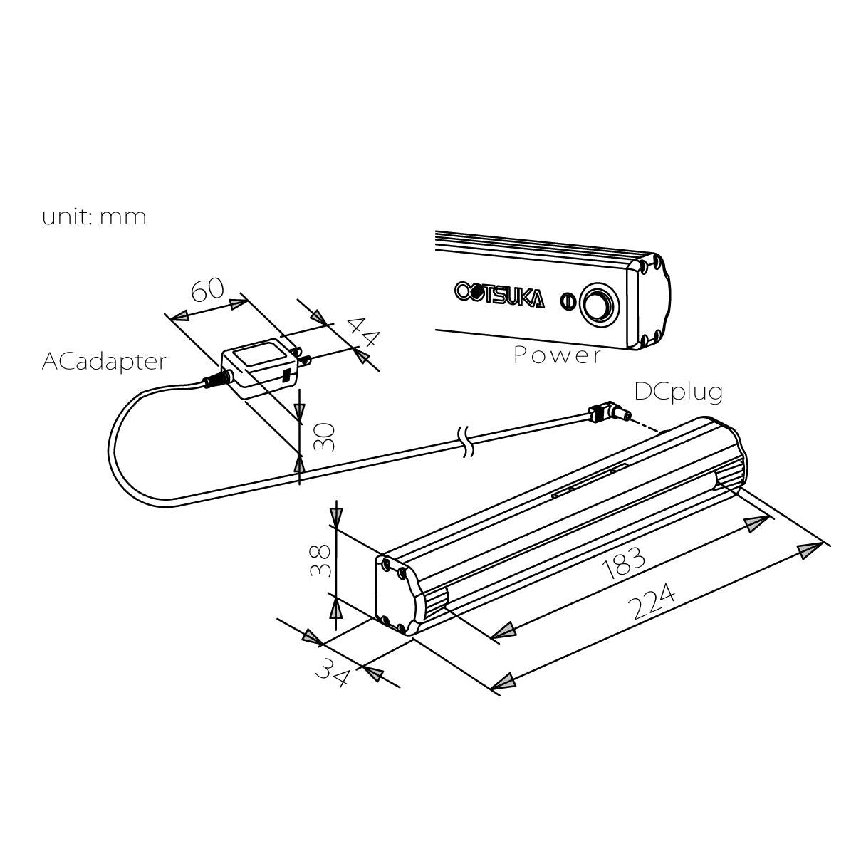・バーライト2MWは、光量、及び光線の照射広がり角の調整機能は無く、全て固定式です。
