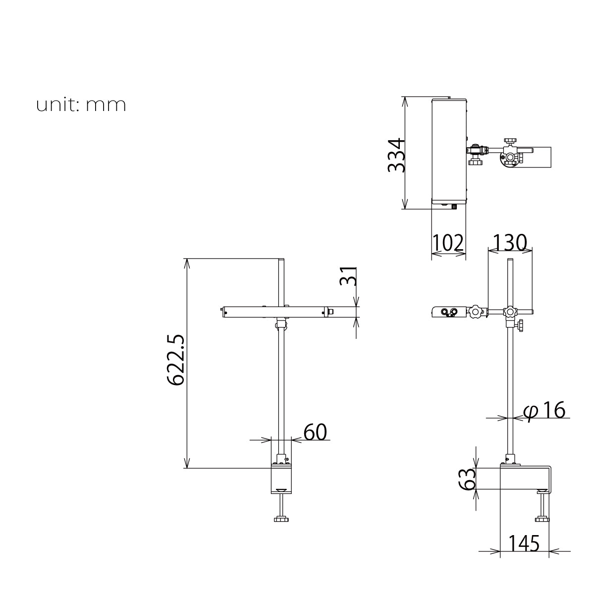支柱は600mmと長い設定となっており目視検査ブースとのセットアップの際に、スペースを最大限有効活用する事が出来るよう設計されています。