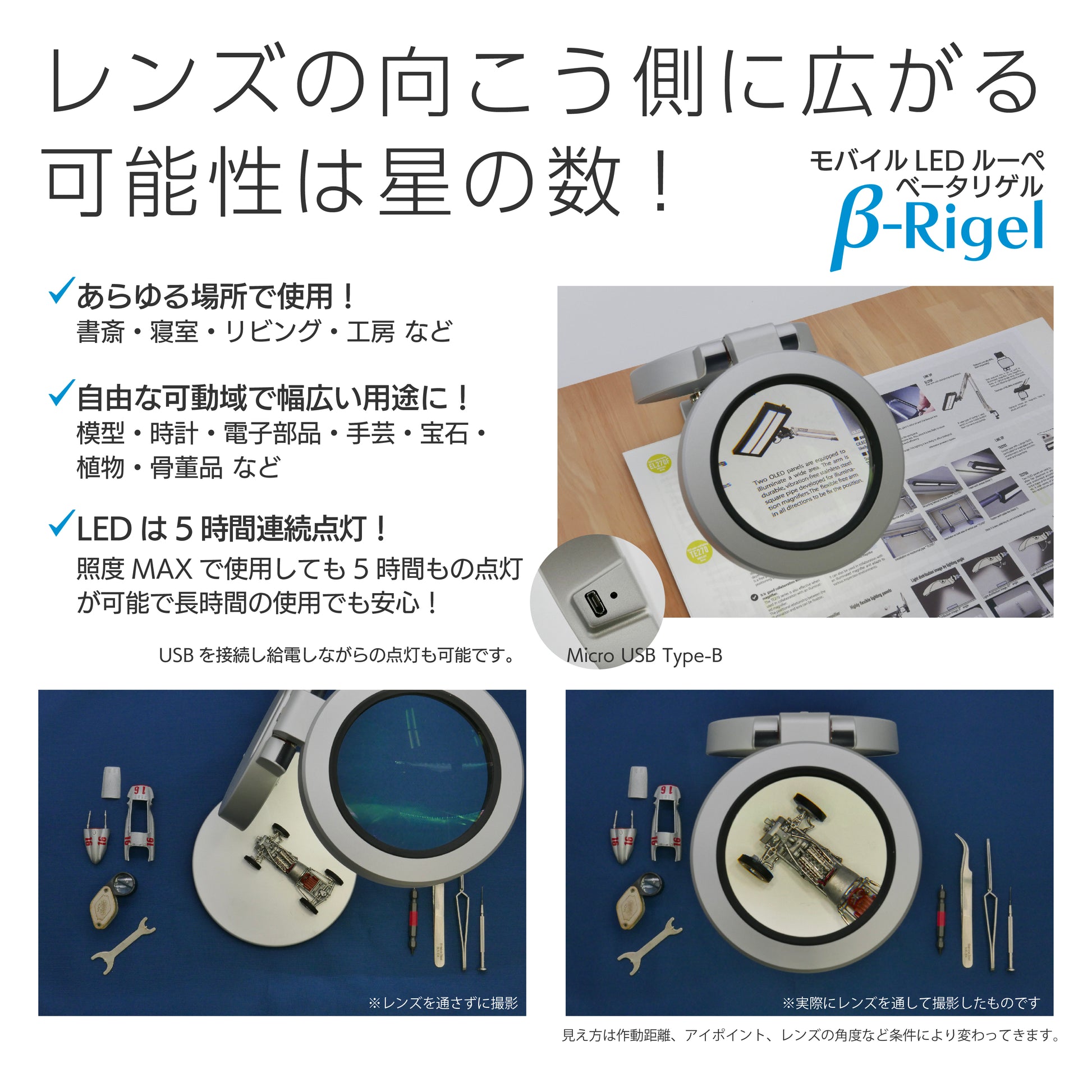 ・β-Rigel uses a high color rendering white light emitting diode to provide uniform light over a wide area with optimal brightness for reading and light work.