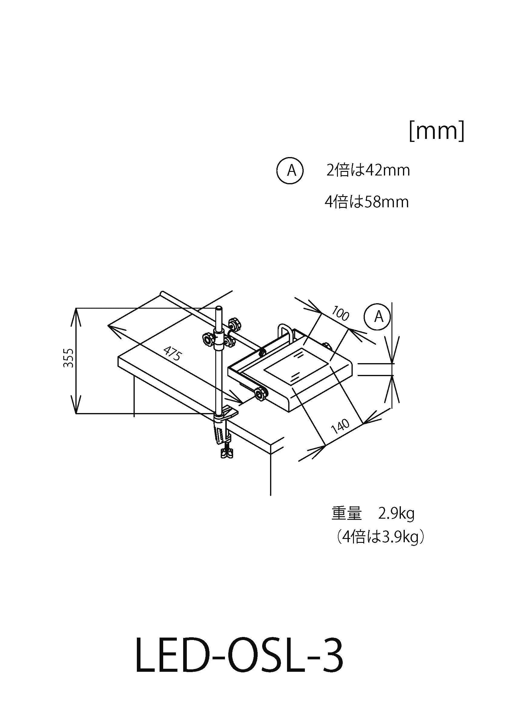 ・As an option, "OSL-PUL (Power Up Lens)" which amplifies the magnification from 2x to 4x is available. *Only available for products with 2x lens
