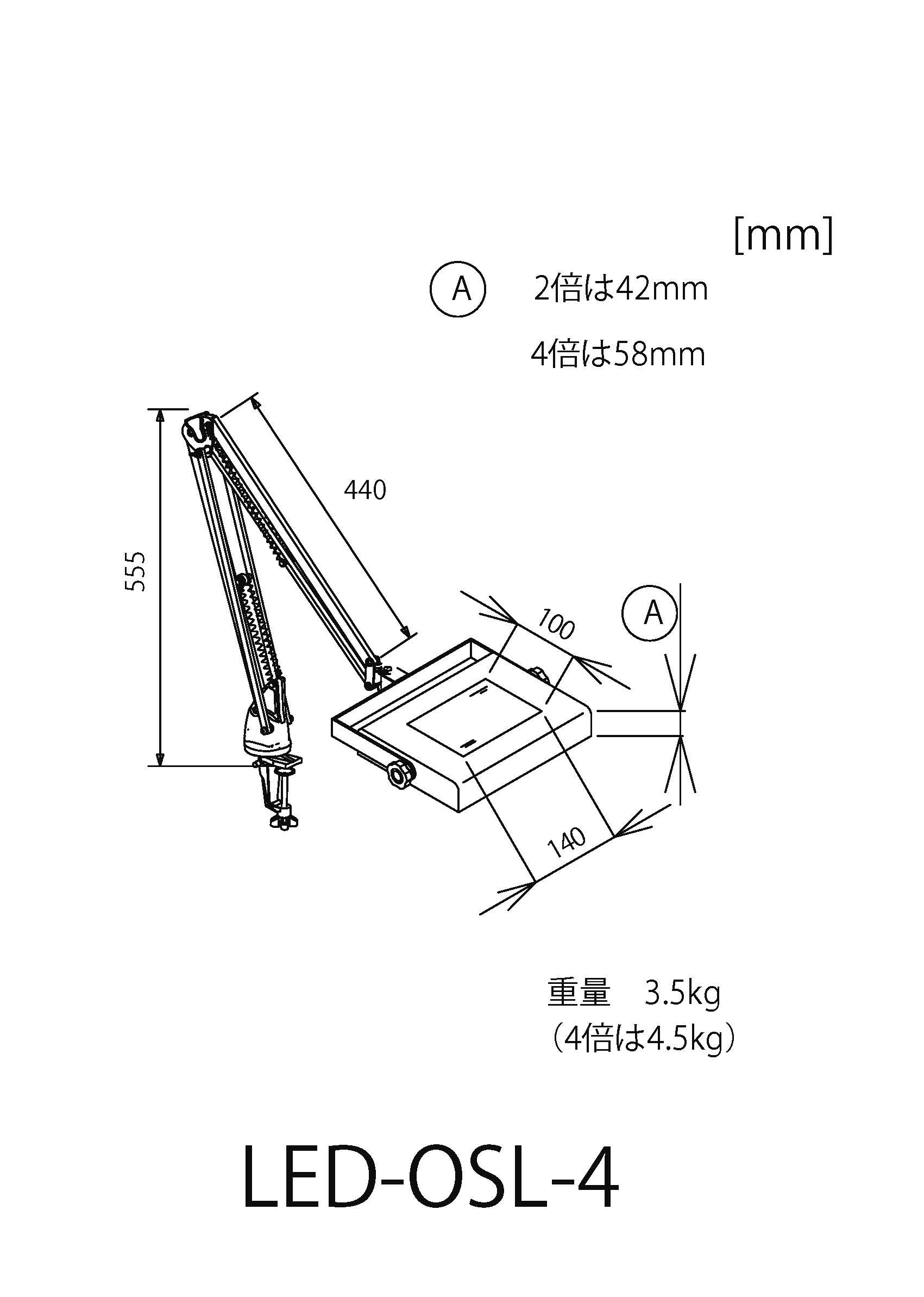 ・The LED-OSL-4 type is an arm-type lighting magnifier that is clamped to a workbench, etc.