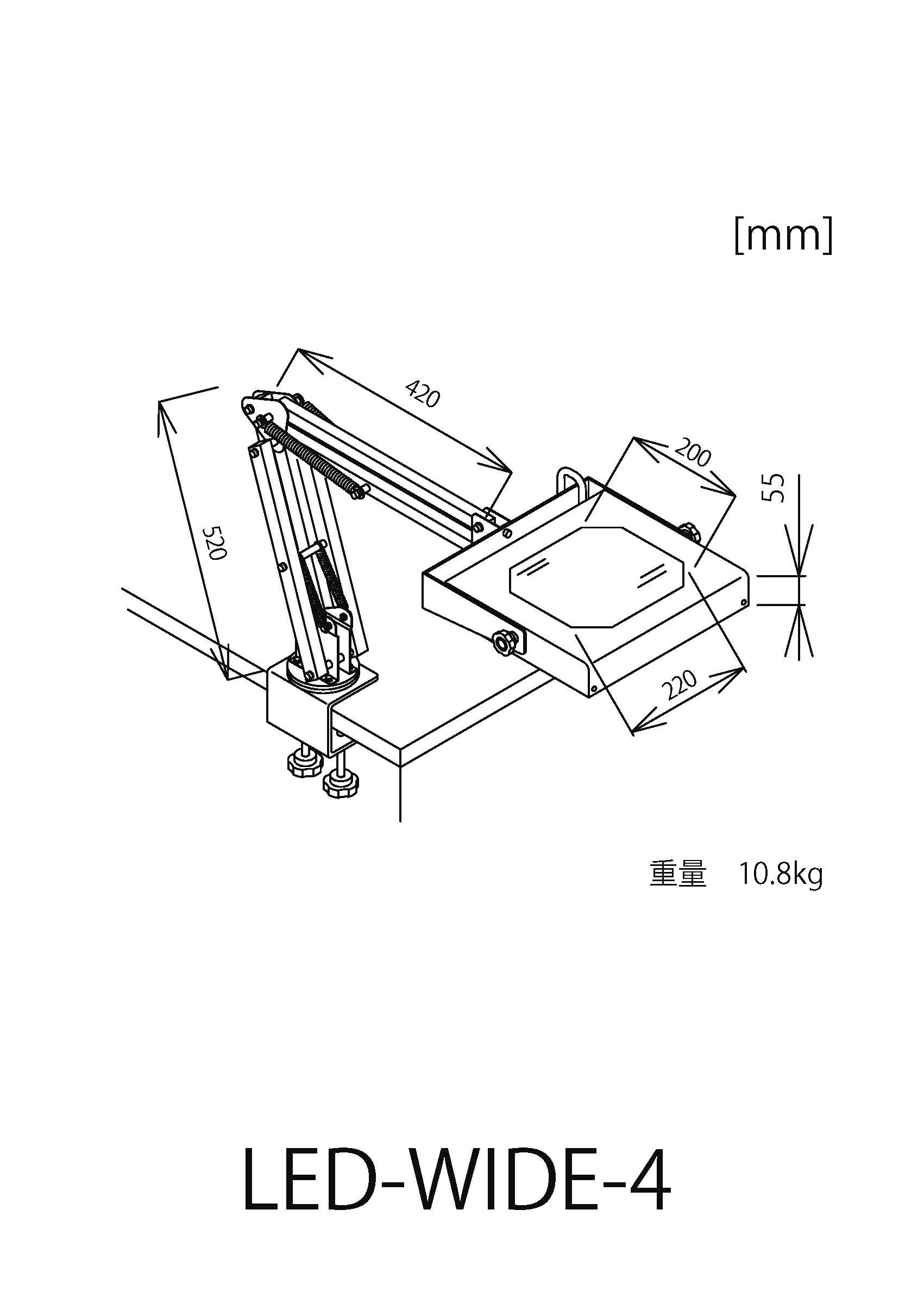 ・The LED-WIDE-4 type is an arm-type lighting magnifier that is clamped to a workbench, etc.