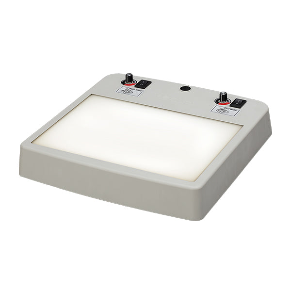 The LZ-1 dimming/color toning LED light box is equipped with a light intensity adjustment function as standard to harmonize the ambient brightness and the illuminance of the inspection light, and also adjusts the blue light range (380-500nm) included in the light beam. Equipped with two LEDs: a Warm White color LED with approximately 25% reduction in brightness, and a Cool White color LED, and the brightness and color tone of the lighting can be adjusted using independent switches.
