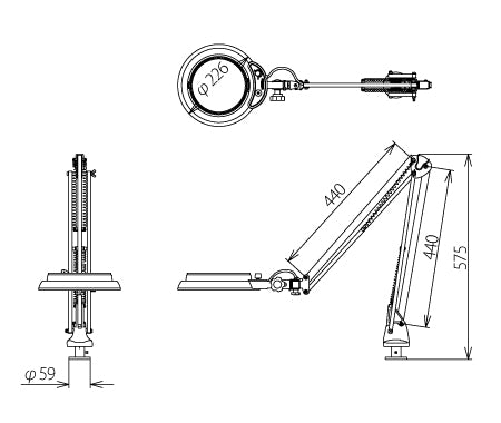 -The FD type is an arm-type lighting magnifier equipped with a flange base that can be screwed onto a workbench, etc.