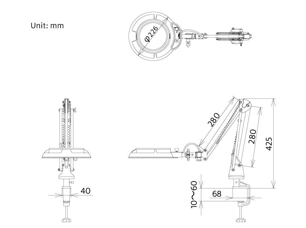 ・ENVL6K-CF型はデスクにクランプして使う、フリーアーム式の製品です。