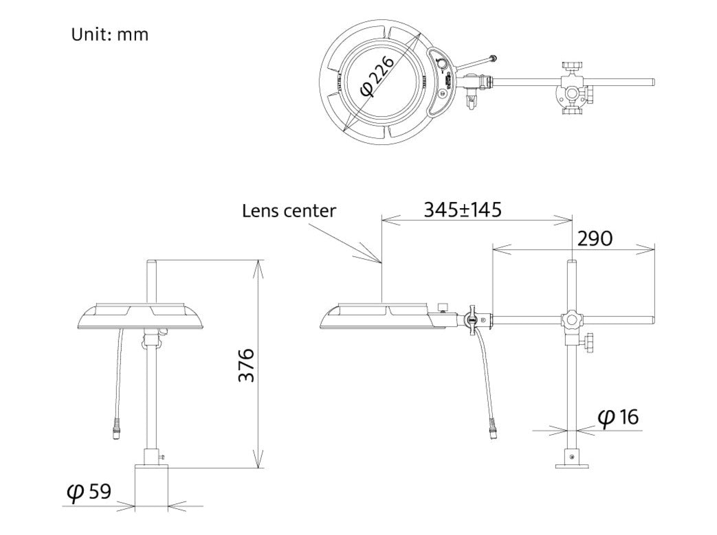 ・ON/OFFスイッチ及び調光用のボリュームはヘッド部に配置し、操作性を向上しました。