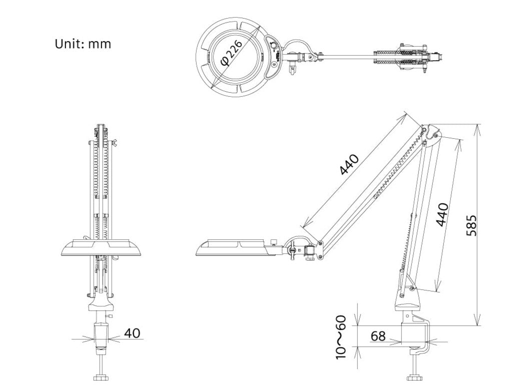 ・ENVL6K-F型はデスクにクランプして使う、フリーアーム式の製品です。