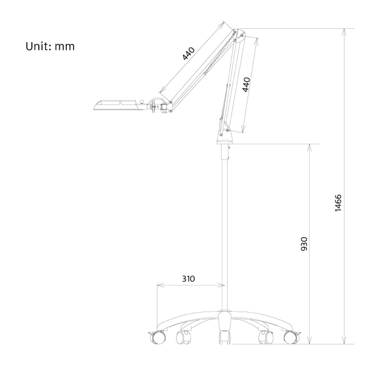 ・ENVL6K-FLはフリーアーム式照明拡大鏡を、キャスタースタンドに取り付けた製品です。
